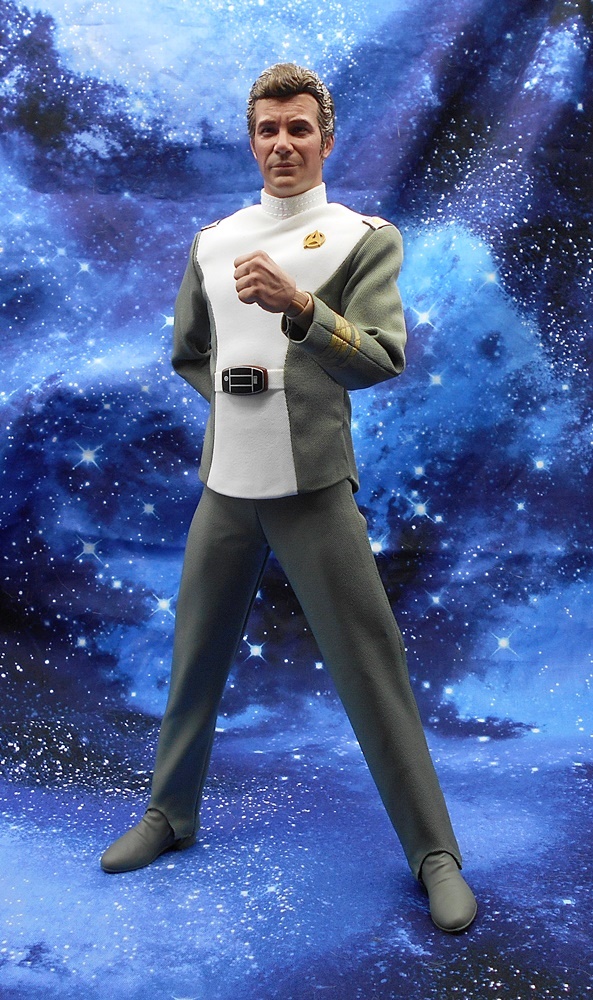 If there’s one place this figure disappoints a bit is how restrictive the uniform turned out, particularly in the groin and shoulders. I expect this from a lot of Sixth-Scale lines, but the uniforms in Trek tend to be a bit more forgiving than the comic heroes and whatnot. Here it’s just a matter of the pleather not giving to allow those wide action stances I would like, at least not without feeling like I’m going to pop some stitches. I can get 90-degrees out of the shoulders, but that’s it, and I’ve already talked about the ankles. At least the knees and elbows are easy to work with! Of course, you get several set of hands, including fists, relaxed hands, trigger-finger hands, and an accessory holding hand.
