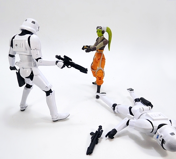 And as a jetpack trooper, this guy is a little underwhelming to play around with. The regular Stormtrooper armor makes him not terribly agile for those flying poses, which makes me think that maybe Jumptroopers should have more unique armor designed for them to maneuver in the air. Another big missed opportunity here is the lack of any jet blast effect parts to draw attention to that jetpack and really make him look like he’s blasting into action.