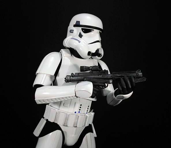 In addition to all the mortar gear, this fellow also comes with a standard E-11 Blaster, which is the same one issued to the Stormtroopers, both Remnant and otherwise. But seriously, is there a petition somewhere to bring back the holsters?