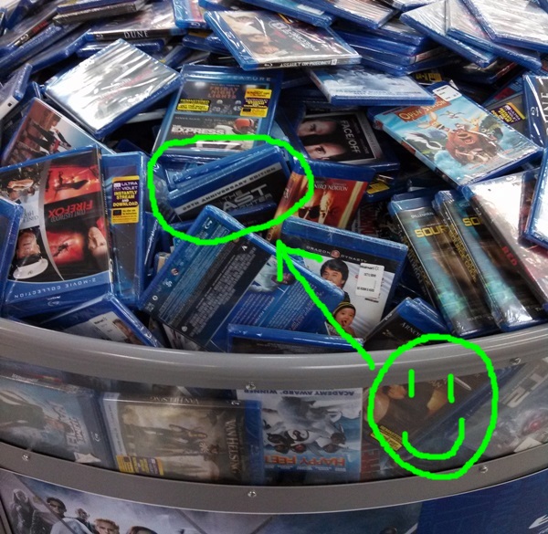 So, I really didn’t need anything from Wally World, but I convinced myself to drive down there the other morning because I was jonesing for an action figure or a Lego set or something. So much of my stuff has been coming to me by way of the Internets lately. I don’t really miss the hunt, but every once and a while, it is nice to actually buy something and not have to wait a week to have it in hand. Anyway, I didn’t do all that well in the toy aisles, but I did spend some time rummaging through the HUGE drum of $7.88 Blu-Rays that that they have set up in the middle of the aisle. I honestly hate going through these things. Trying to find anything in it is like digging a hole in the sand. It just keeps closing up and you can spend an hour just flipping through copies of Ace Ventura, Face Off, and Happy Feet. Also, I feel like a homeless person picking through a giant garbage can looking for something I can use to decorate my cardboard box shack.