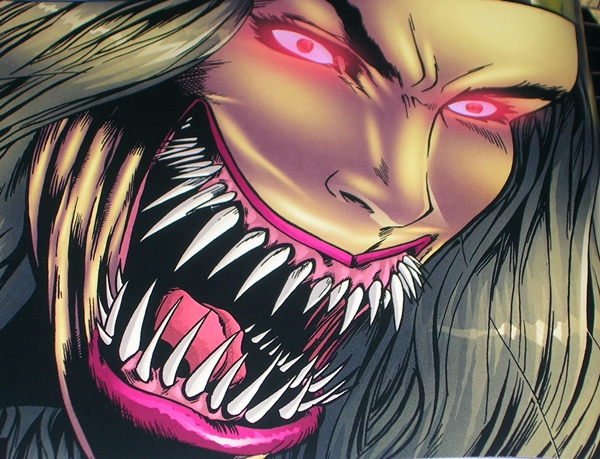 GFT was the first comic that I started reading digitally on a tablet, and I’ll confess I didn’t take to the book right away. It lacks the pithy dialogue or sweeping stories that I usually go for in my comics. The humor is more subtle and I sometimes wonder how many of the chuckles I get out of this book are intentional. The first story was rather predictable and seemed to go nowhere, but I downloaded the first 10 issues as part of a sale and I pressed on. Before long, things got more interesting, and before I knew it, I was buying more downloads to see what kind of twisted shit they could come up with next. As it turns out, it’s an insidious book that slowly draws you in, making the stories more complex, and eventually pulling back the camera and revealing the two narrators, Sela and Belinda, as characters in a struggle against each other over the souls of their target of the month. If this whole thing was planned out, it’s rather clever, but also a risky move, because I imagine a number of people were tempted to drop the book from their pull lists before it really started to get good. As such, I think it’s one of those comics that may be best experienced in collected editions. On the other hand, if you stick with it through the individual issues, reading GFT is like being in that proverbial pot of slowly boiling water. I was getting hooked (or is that cooked?), but I didn’t realize it was happening until it was too late. Of course, all the Zenescope branded T&A in the art doesn’t hurt either. Yaknowatimean?