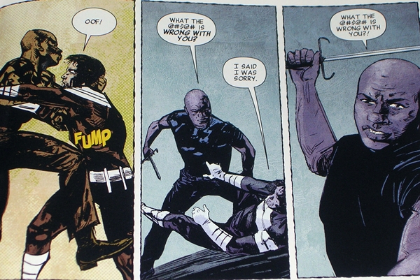 I could go on and on. There’s some great play between him and his reluctant partner, the sexy, deaf ex-Avenger, Echo. A priceless run-in with criminal hack squad The Night Shift. But easily my favorite part of any of the books is when Spector dresses up like Bullseye and beats the shit out of his newly hired consultant just to see if the guy was trustworthy.