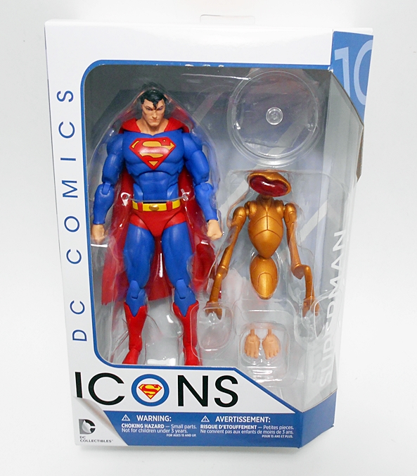 We’ve seen the packaging before and it’s as attractive and collector friendly as ever. The blue and white coloring looks sharp and I dig the placement of the S-Shield in the “O” of ICONS. The box indicates that Superman is the tenth release in the series and calls out that this is Superman as pulled from the pages of John Byrne’s landmark “Man of Steel” miniseries way back in 1986. The big window not only gives a good look at Supes, but also the other figure he comes with, Krytonian helper-robot, Kelex!