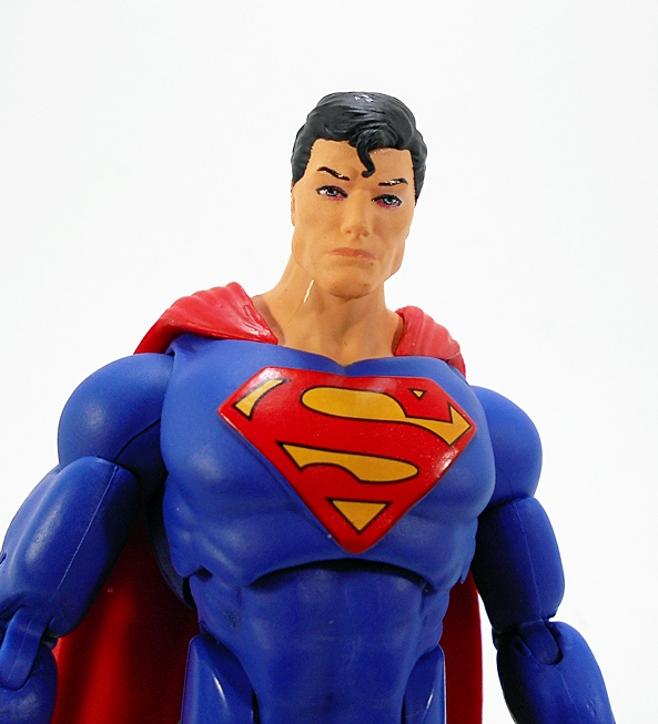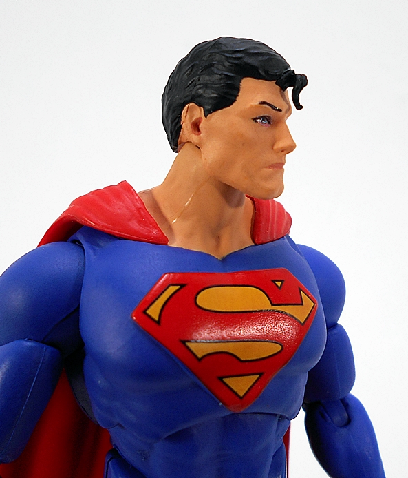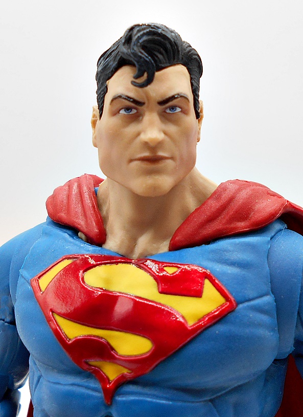 The head sculpt here is much sharper than Batman’s, but in fairness they had a lot more to work with. Overall, I like the portrait, but looking straight on there’s definitely an extra helping of jawline. I like the furled brow and intense gaze, which makes him look just a bit perturbed at the whatever injustice he is perceiving. I don’t like my Superman to be too angry, so this works for me. The cleft chin and the cowling are also wonderful little touches.