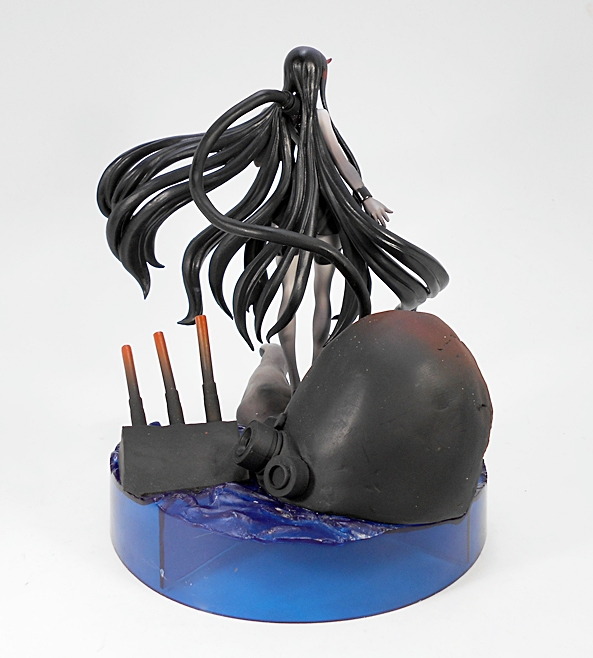 And here she is all set up and ready for display. Akizuki stands on one foot with the other leg bent at the knee and clutching a handful of Susuki Grass, which is a traditional offering at the Otsukimi harvest celebration, or Moon Viewing Ceremony. Her pleated skirt is a palate swap of her sister’s, so instead of black with a white stripe it’s white with black stripe. The top, however, is the same, mostly white with a black collar and white stripe, and an orange neckerchief. And while Teruzuki wears her Anti-Aircraft Fire Detector on her neckerchief, Akizuki wears hers up in her hair.