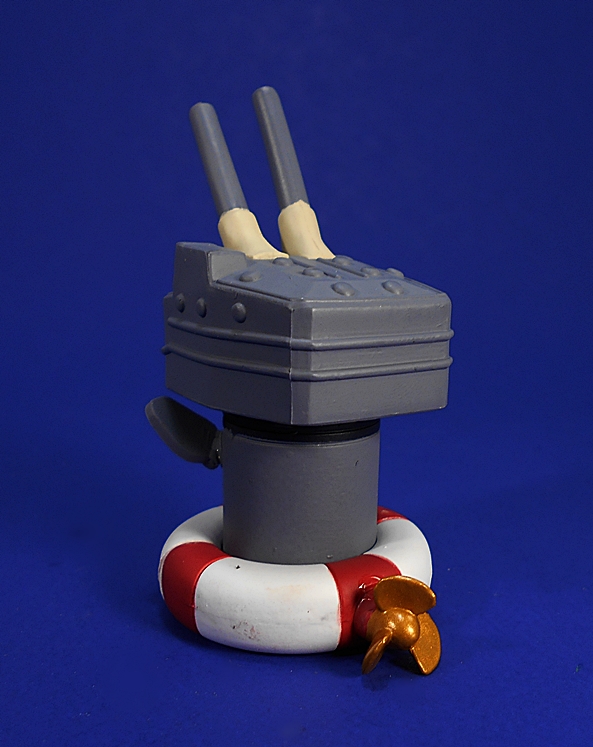 Like her sister, Akizuki also comes with her very own Chou-10cm-hou-chan, which is basically a little sentient gun turret, and he’s every bit as adorable as Teruzuki’s. He has both viewing ports open, giving him wide eyes and there’s a cat-like smile drawn on his face. The guns are articulated and are kind of expressive, like antenna. He’s also holding an offering of Susuki Grass in his little flipper-like arms, which attaches via a peg. Unlike Teruzuki’s little friend, this one doesn’t have a post to attach him to the base, so you can just position him anywhere you like.