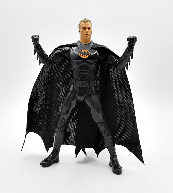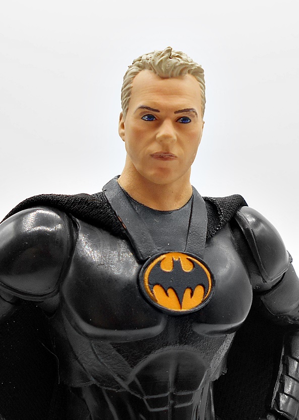 The portrait is pretty nice, albeit not a dead-ringer for Keaton. I like the exposed area around the eye holes in the mask are painted black and there’s some sharp edges between the cowl and his skin suggesting the face is sculpted separately. There’s a subtle curve to the ears and these seem to be stiff enough to not be susceptible to warping.