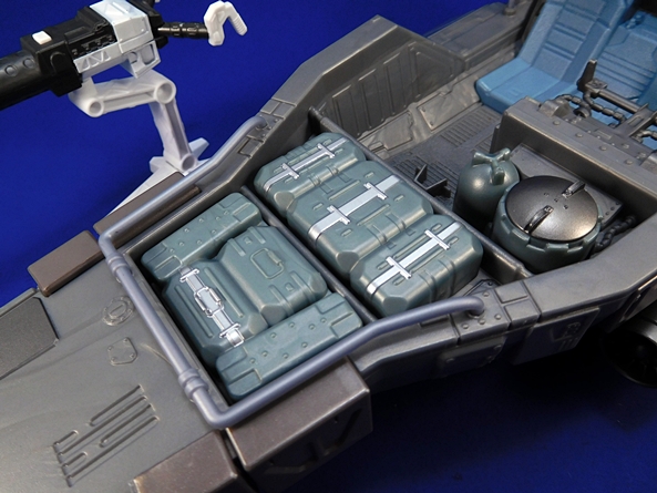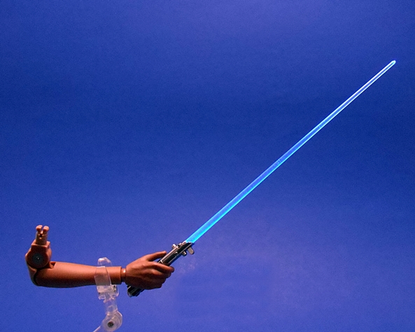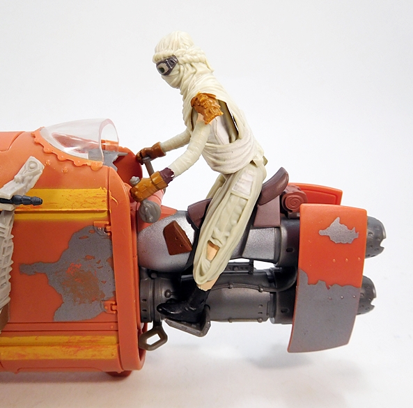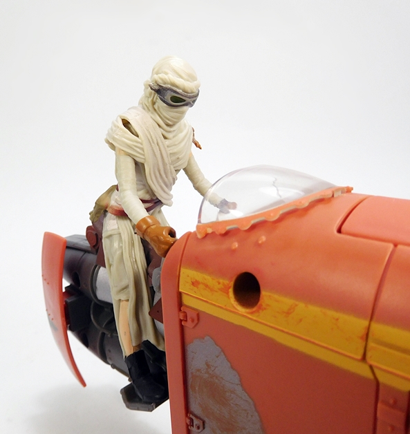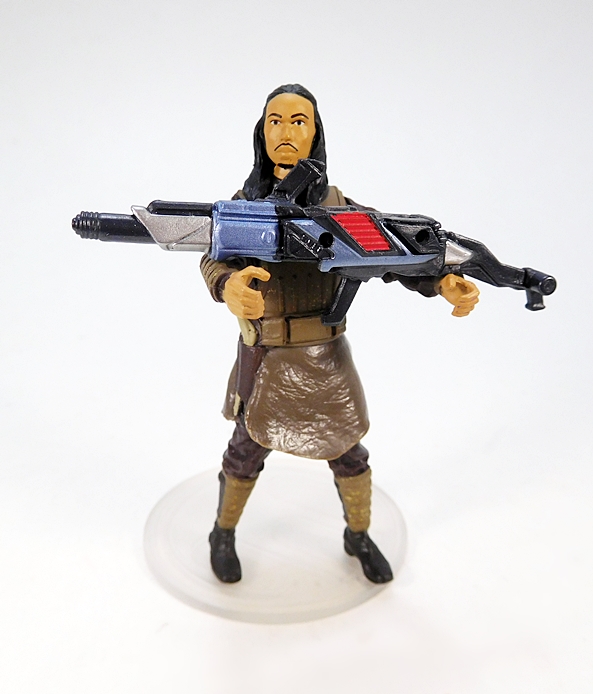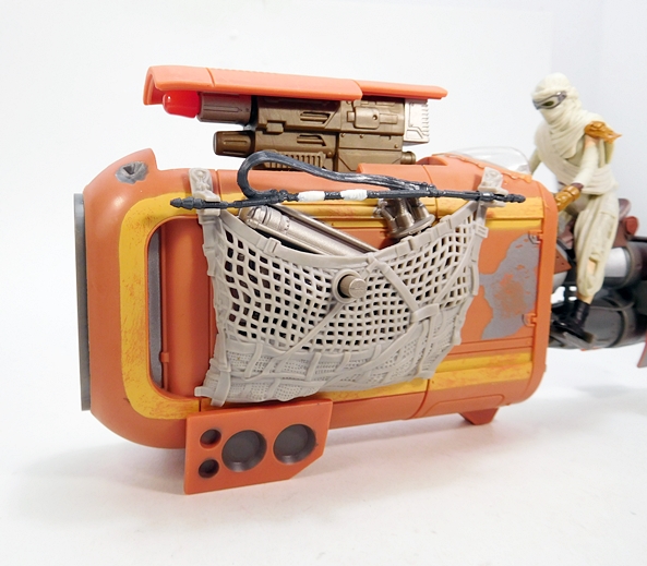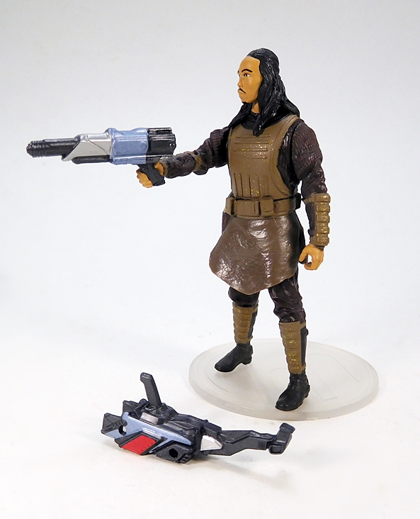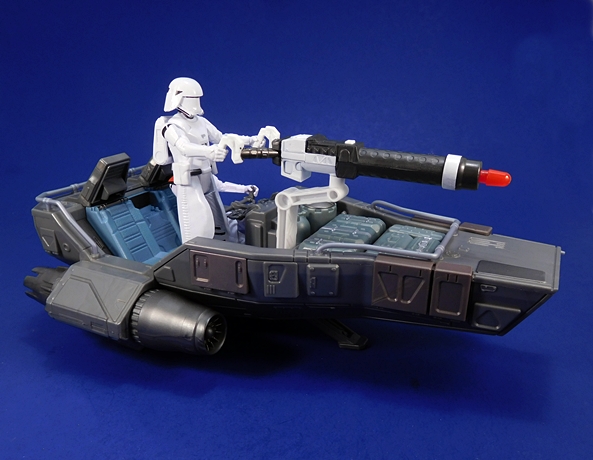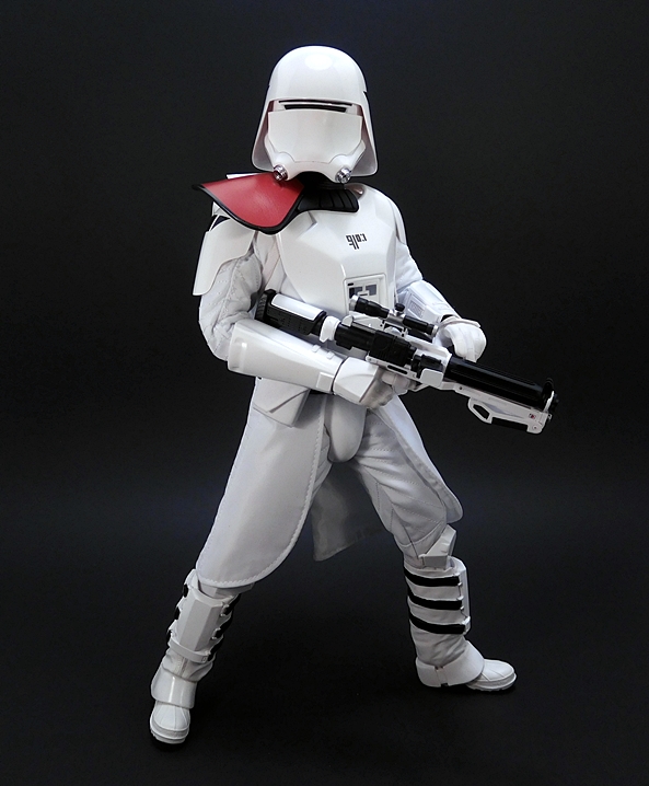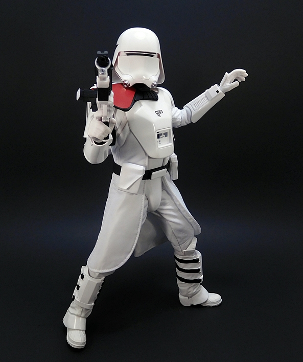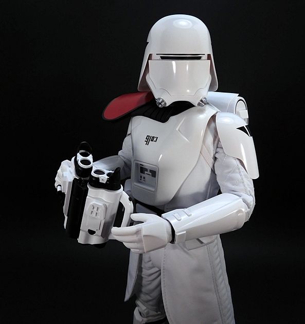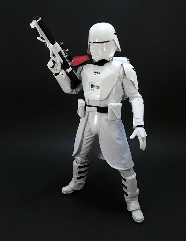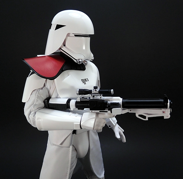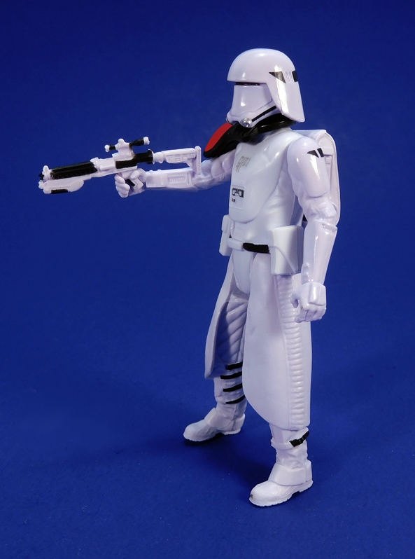The First Order Officer comes with a pistol, which fits nicely into his holster, and can be held in either hand. As with a lot of weapons in The Force Awakens, this one is a pretty unique and interesting design.