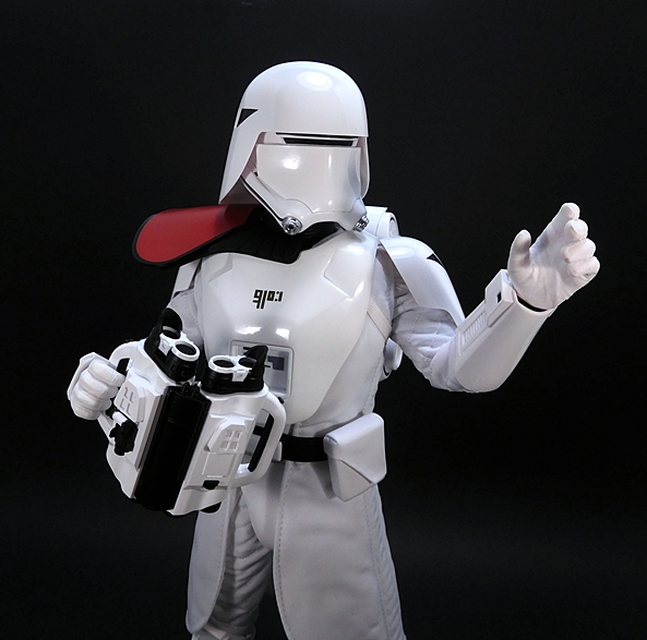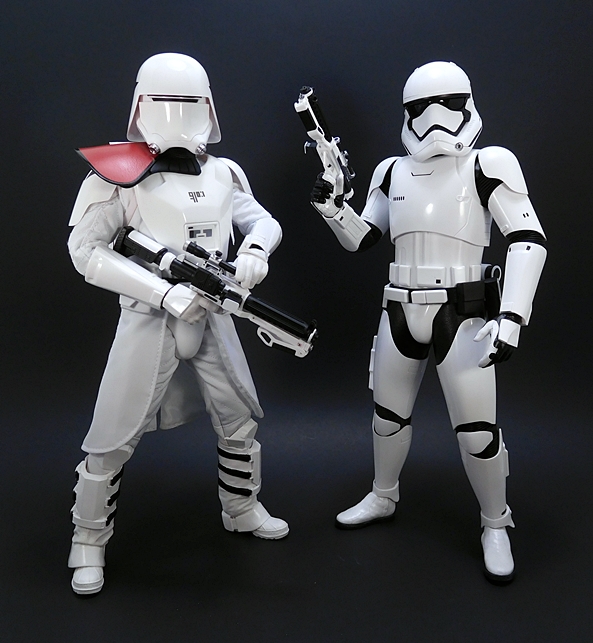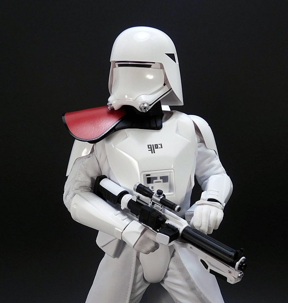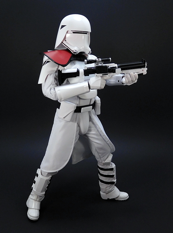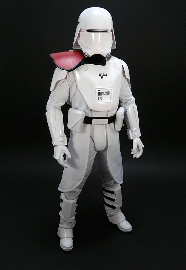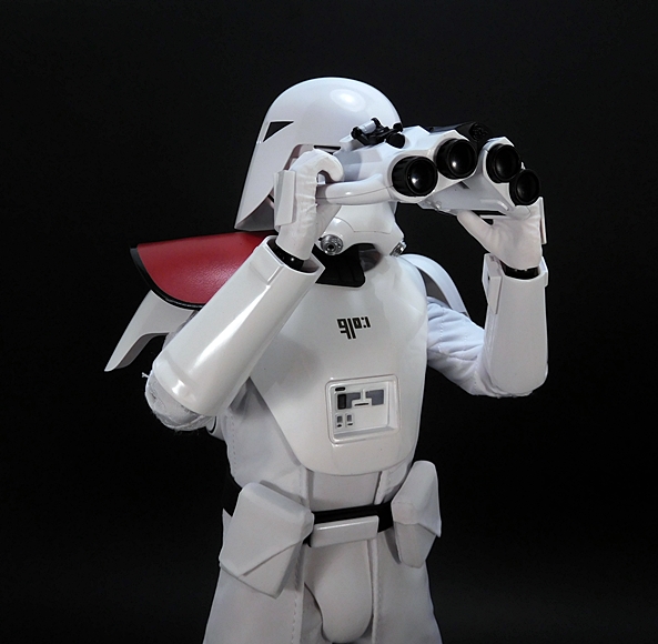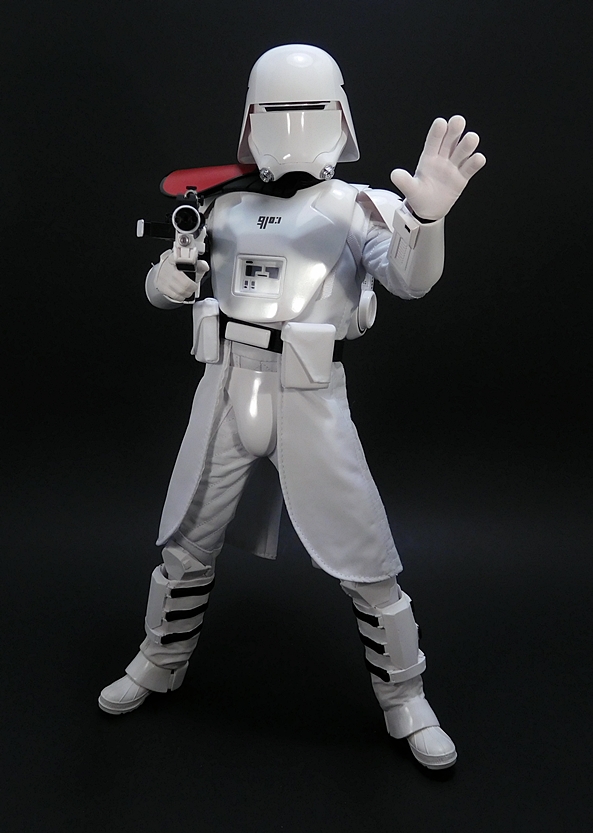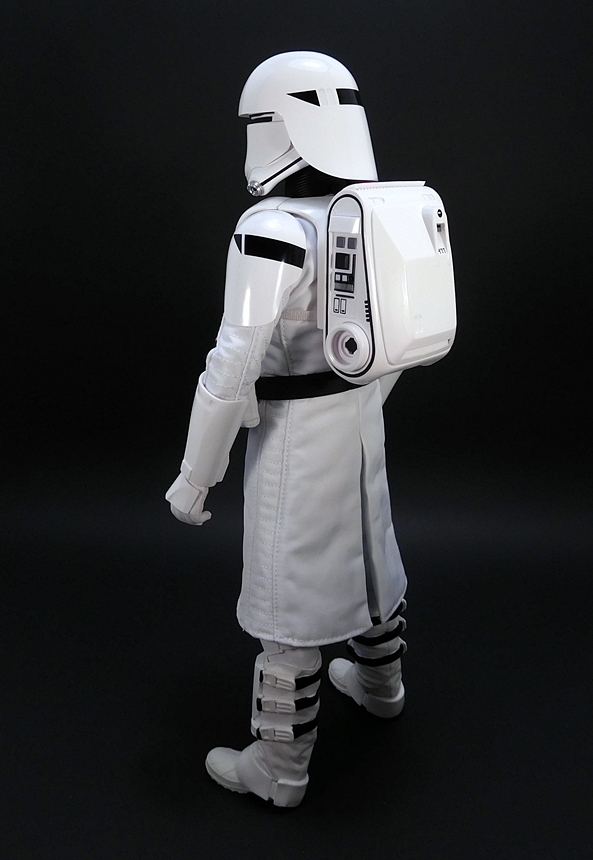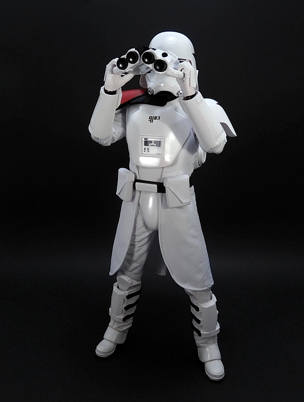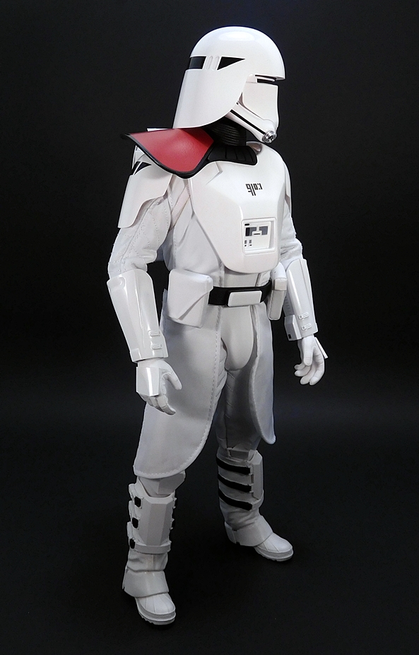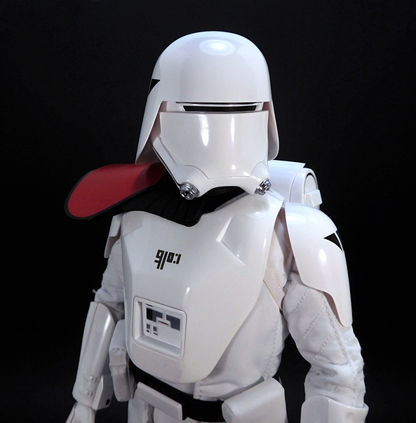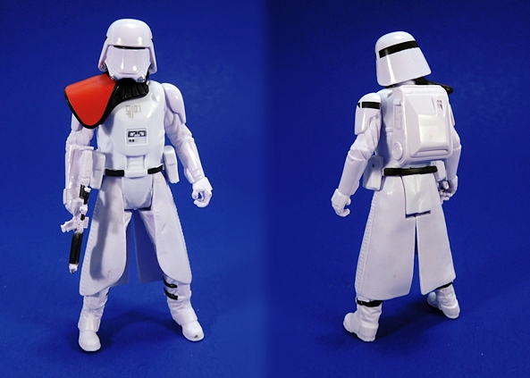 Don’t ask me why, but I love getting figures of Imperial, or in this case First Order, Officers. Maybe I have a delusion that someday Hasbro will release an Imperial bridge as a playset and I can populate it with all sorts of top brass. I doubt that’s going to ever happen, but it won’t stop me from snapping up these officers every time I see them. I have no idea what this fellow’s actual rank is, but he’s wearing a sharp-looking uniform that looks like it’s a very dark charcoal in color with shiny black boots. I really love the sculpted tunic on this guy. It has flared shoulders and it’s belted with one of those wide belts with a big slab of belt buckle, which hasn’t changed much from the Imperial days. He has two sets of rods on his chest, which I’ve been told are some kind of security keys, and he has a sculpted band around his forearm with white edges. The outfit is rounded out by a holster on his right side.