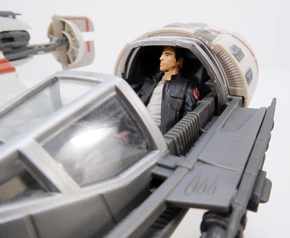 As expected, the figure does fit inside the vehicle. The hatch on top opens to reveal a very detailed cockpit, complete with texturing on the seat and the deck plates, and even all the control panels are fully fleshed out in the sculpt. And unlike some of Hasbro’s recent vehicles, the figure fits in there quite comfortably and with plenty of room to spare.