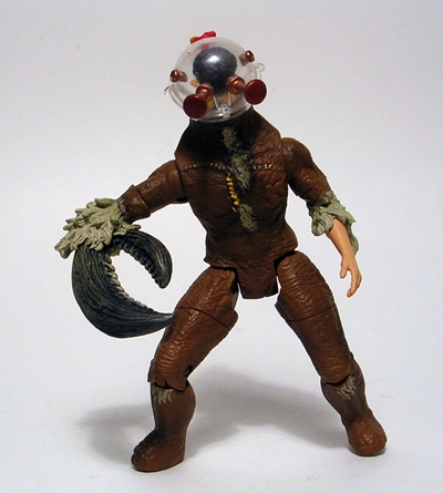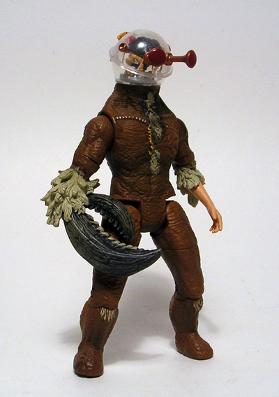 The Axon’s articulation is a lot more limited than most other Doctor Who figures, but I blame this more on his body type than any lack of effort on CO’s part. He has a rotating head, universal joints in the shoulders and hips, and swivel cuts in the wrists and ankles. His waist looks like it contains a joint of some kind, but mine doesn’t move at all there. I’m guessing this seam may be a holdover from the figure’s BAF origins.