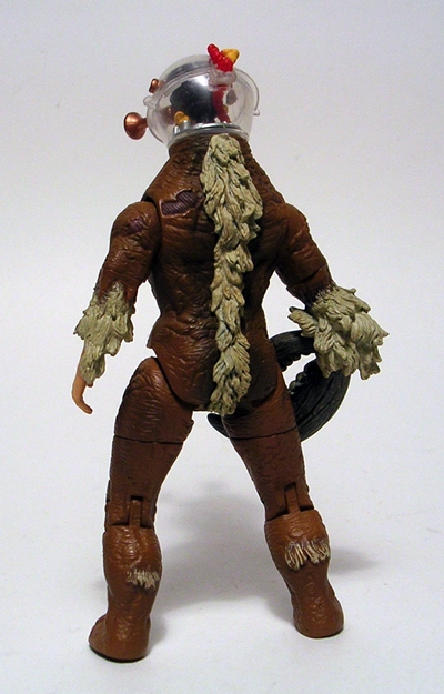 Regardless of his origins, the Axon is a very cool looking figure. There’s a ton of sculpted details on his copious body. In fact, there simply isn’t a spot on this figure that isn’t elaborately textured in some way. The tendrils are made of bendy rubbery plastic and protrude off of his body at various points. The main complaint here isn’t likely to be the amount of effort that went into him, but that the detail makes him look more like a plant than anything else. It’s also worth noting that the tendrils on the Axon costume were a lot thinner and more stringy. Still, we can blame that partly on the similarities of the costume, and partly on CO wanting to cut costs by reusing a mold. Hey, Hasbro and Mattel do it all the time, so I’m willing to let CO get away with it now and then. And either way, I’ll be happy to buy this figure again when CO inevitably repaints him green and releases him as a Krynoid.