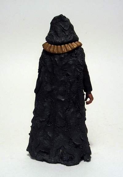 The body does not feature a lot of paint apps or sculpted details, but it is a great likeness of The Master’s iconic black suit. In fact, the only place below The Master’s neck that isn’t black is the little bit of white on his cuffs that peek out from under his sleeves. He’s even wearing black gloves. It may not be the most visually stunning outfit, but it is totally in character for The Master’s wardrobe. He comes with his Tissue Compression Eliminator, a ghoulish device that basically shrinks its targets, killing them in the process. The sculpt here seems a little too cylindrical, more like a black and silver Sonic Screwdriver, but I’ll take what I can get.