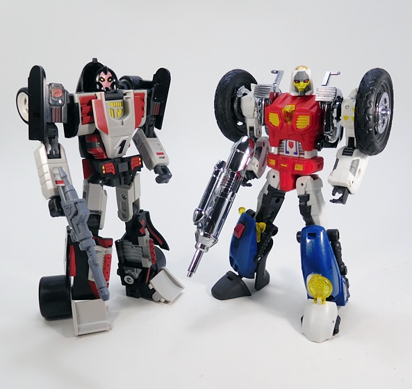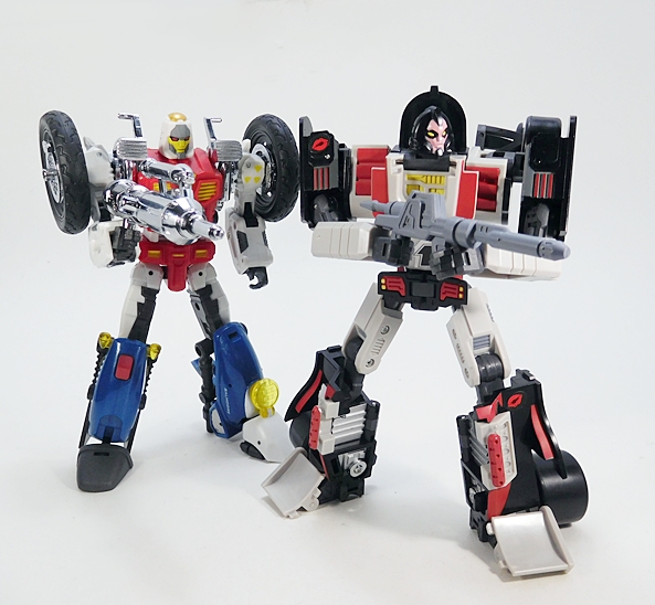 In the end, I think this is a fun and good looking figure, and she compliments Salmoore quite nicely. The plastic quality feels a smidge better than Salmoore and the engineering is a lot better thought out. I’ll grant you, DX9 put a lot more effort into making Salmoore work as Cy-Kill than they did making Cocomone look like Crasher, and that’s certainly going to be a sticking point with some collectors. On the other hand, if you aren’t too hung up on the Go-Bots, you can easily just slap a Decepticon emblem on her and have a new MP-scaled figure for the woefully outnumbered MP Decepticons. I couldn’t really recommend Cocomone at the original price point of around $70, but at half that price, I’m mighty glad I picked her up.