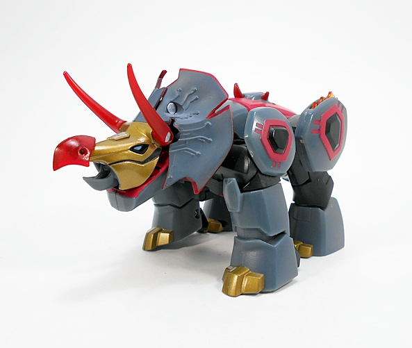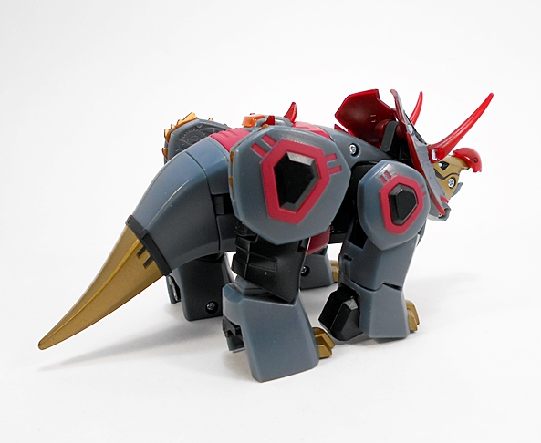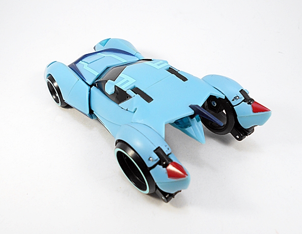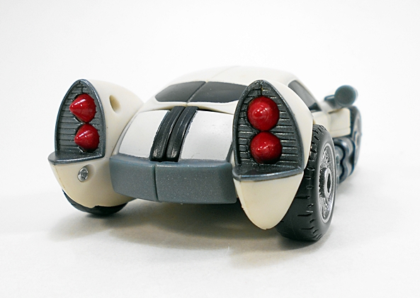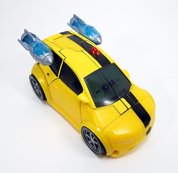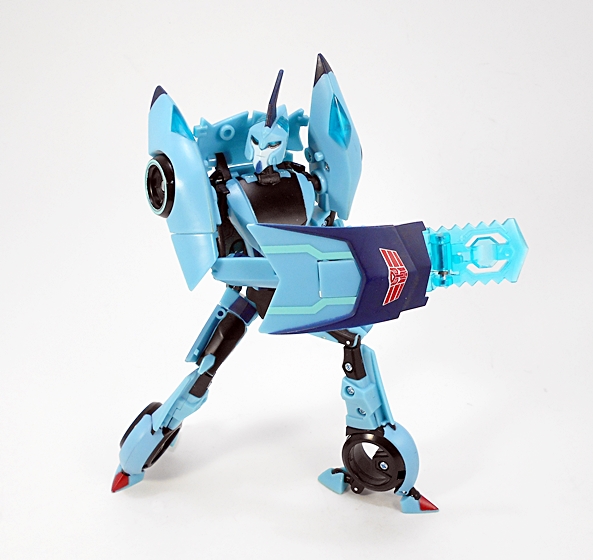 The undercarriage features three sets of folding landing gear and while the missile launchers have to be pointed back to use them, once he’s in flight, they can be angled forward to a more useful position. They’re not positioned under the wings, like you might expect, but I like their low-slung look here.