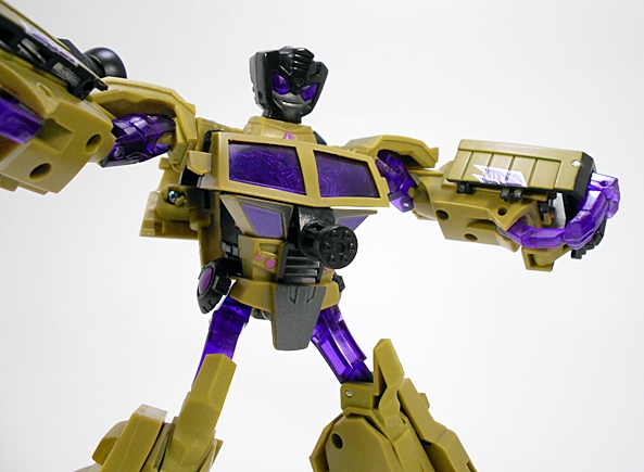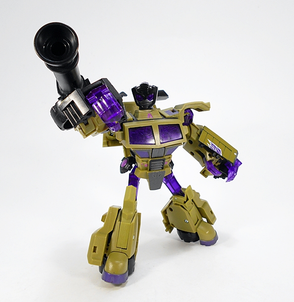 Much like G1 Starscream’s null rays, this guy’s missile launchers can be angled up when not in use or flipped down to a firing position. They can, however, get in the way sometimes, so it’s always an option to pull out the missiles entirely. But then, what’s a Decepticon without his weapons, eh?