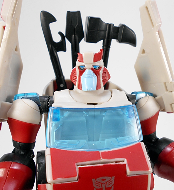 While I love this design, playing with Starscream can sometimes be a bitch. For starters, a lot of the bits that fall off of him during transformation will do it when I’m playing with him. Especially those hands! Also, his legs are oddly articulated and feature some unforgiving ratchets. Getting him posed so that he doesn’t look like he’s doing pelvic thrusts can be a lot of work, but a lot of times it’s worth it.
