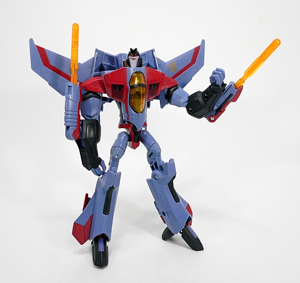 Voyager Class Starscream is far from a perfect figure. Much like the real Starscream his toy can be a frustrating jerk, but I think there’s more good here than bad. The figure does a nice job bringing the animated style to plastic form, not to mention the engineering of a working Transformer, and that’s something that in my mind should never be underestimated or overlooked about this line. And it feels great to finally have a figure of such a masterful treatment of this character in my collection.