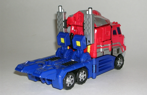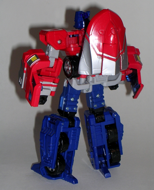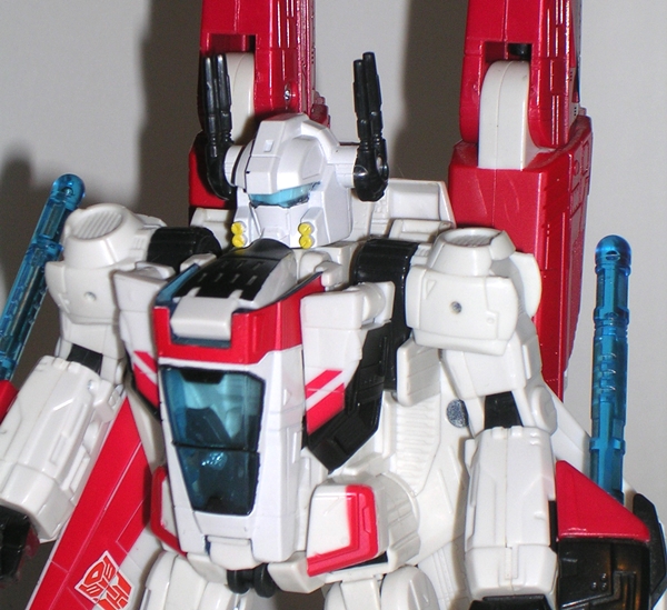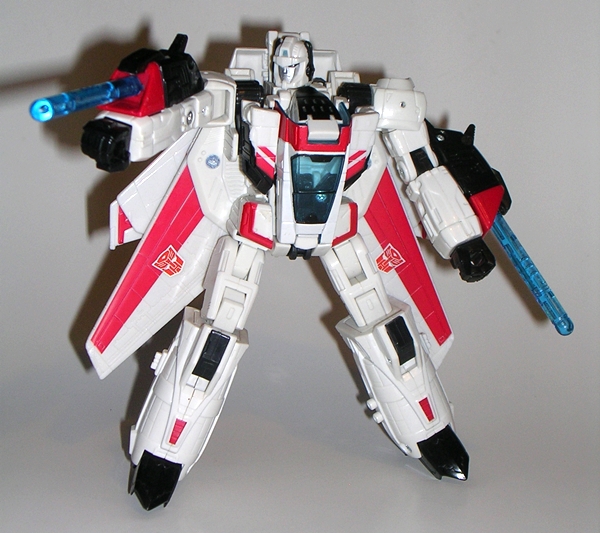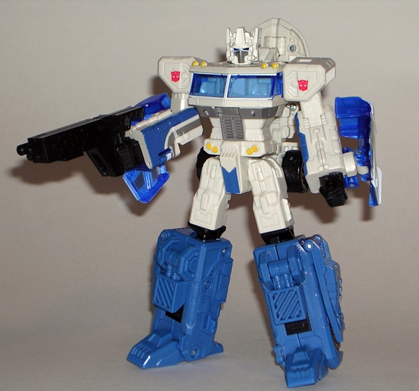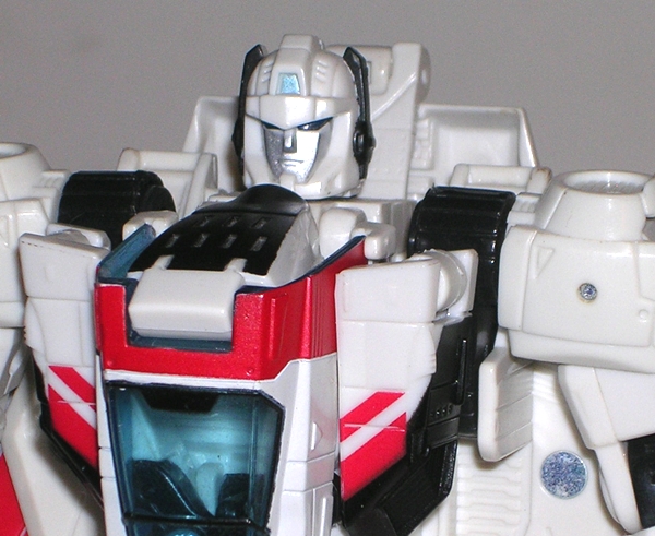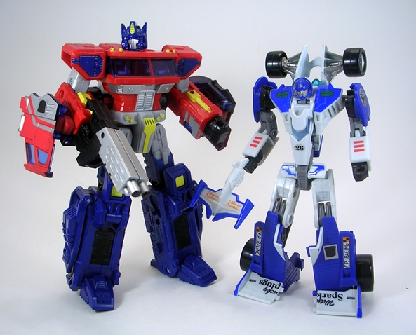 I have a special fondness in my heart for the original Hasbro toy. For some reason I could never get him in the stores, but my friend had him and I worked out a trade for some odds and ends from my own toys. I think he got my Clash of the Titans Perseus and Pegasus out of the deal. I loved Mirage in the cartoon and I thought the vintage toy was fantastic, so I was willing to do whatever needed to be done to get him. Keeping true to his G1 origins, Classics Mirage is a blue and white Formula-1 racer and a pretty good one at that. He’s sleeker than the original car mode with better contours and he’s just all around less stocky. He also has a fully enclosed translucent blue canopy.