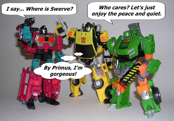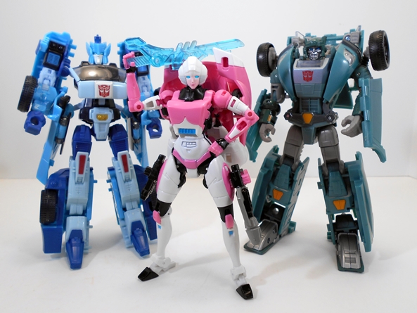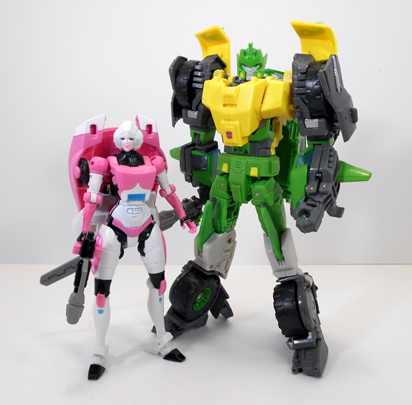Arcee is a great little figure made all the sweeter for how long we had to wait for her. Yeah, she’s a shellformer, and yeah she wears a car on her back, but she’s also happens to be a gal with plenty of charms. The sculpt and coloring are great and I was surprised at what a solid and stable figure she is to play around with. Is she enough to keep me from blowing $60 on MMC’s Azalea? Well, the jury’s still out on that one. What I will say is that for a $15 Deluxe I think Hasbro did right by us old-timer fans with this release. She looks really good hanging out with the likes of Generations Blurr and Kup, but it’s a pity she’s too undersized to hang out with her boyfriend, Springer.