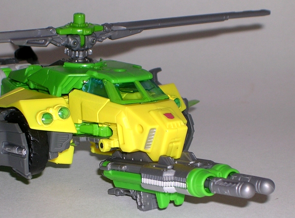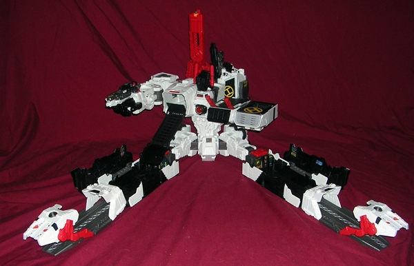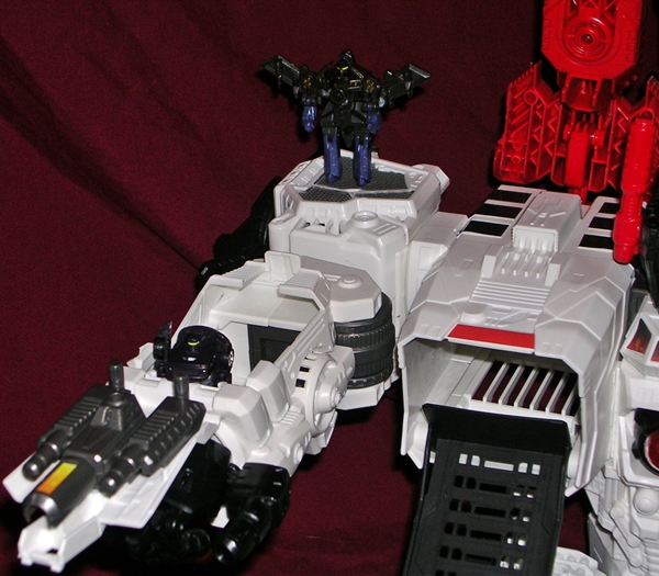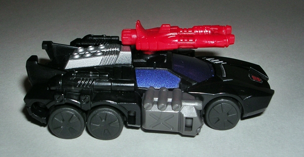 As mentioned, the wing tips pull off and get pegged together and then placed on either of his arms to form his fusion cannon. It’s not very traditional, but it does have a certain alien energy weapon look to it, and it does fit the artwork. You can pull out the front of it to reveal some translucent purple, which looks fantastic.