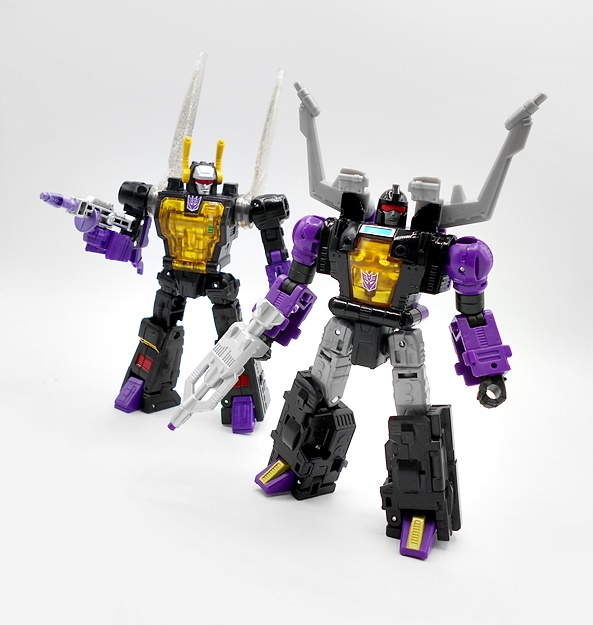 If you hadn’t noticed, Hasbro Transformers reviews have been drying up here. This is only my second for this year, and there were only about half a dozen or so last year. I still love Transformers, I’m still waiting for Beachcomber and Swoop, but otherwise I’ve got most of what I wanted out of the official Hasbro stuff and I can’t think of much shown at SDCC that interested me. Still, every now and then something comes out that entices me, like this boxed set of updates to two of the four Deluxe Insecticons. These guys were originally rolled out in the 1985 catalog and I was both appalled and obsessed with them. On the one hand, they didn’t look anything like my beloved Insecticons, I think they were recycled Bandai toys, and they never appeared in the cartoon. On the other hand, they looked so unique that I couldn’t help but want them. Although, to be fair, I wanted every Transformers figure when I was a kid! Well, I don’t remember ever seeing them in any stores and so it was not meant to be.