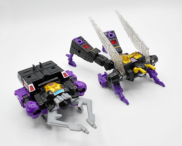 The figures come in a fully enclosed box with a small Weapon Master type guy called Malleus Minotaurus… seriously, WTF Hasbro? I hate this box. The character art looks good, but it feels like the Transformers logo should be running down the opposite side. As it is, it makes the box look like it’s upside down when it’s not. Also, look at all the qualifiers… Transformers Legacy United Doom’N Destruction Collection. The Transformers branding has become a confusing mess to me and I honestly have no idea what line is what anymore. But enough of my old-man griping… Let’s start with Barrage and his bug mode first.