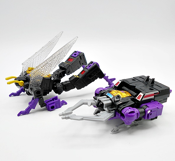 Both Barrage and Chop Shop turned out great, although Barrage gets the nod for being the more reworked of the two. I love how they managed to flip the torso to give him a new chest, and it makes me wonder if that was planned from the start or just a really clever retrofit. And while Chop Shop doesn’t get any new engineering, I’m happy with how much they re-sculpted for this figure. In either case, I wouldn’t have guessed that the regular Insecticon molds could be tweaked to work this well as the Deluxes. Will we get a second set with Venom and Ransack? Well, I guess we did get a Kickback repaint as Ransack in one of those Buzzworthy sets, but I’d like to see Hasbro try again and give us Venom too. And wouldn’t you know it… My Bombshell arrived just in time to miss getting in the group picture, but I’ll probably get around to giving him a proper review in the near future and we’ll get them all together then!