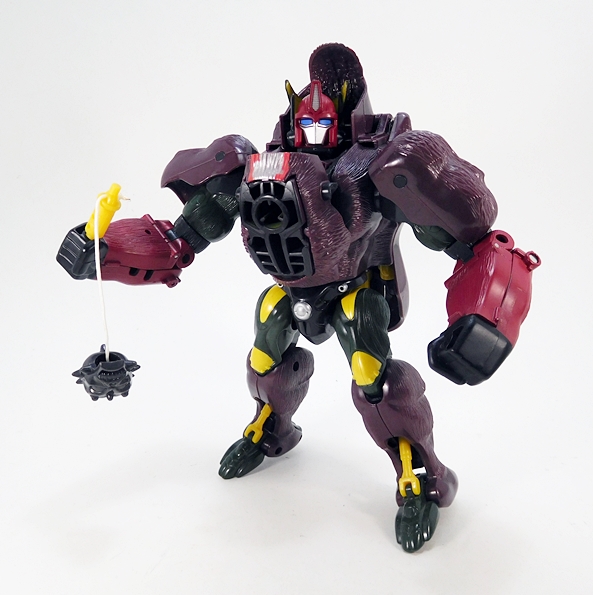 …like a goddamn skull mace hidden in your right arm. Holy Primus, what were these people thinking? This has got to be one of the most bizarre weapons I’ve seen on a Transformer. It’s certainly rather uncharacteristic for the Primal I know. How about some swords?