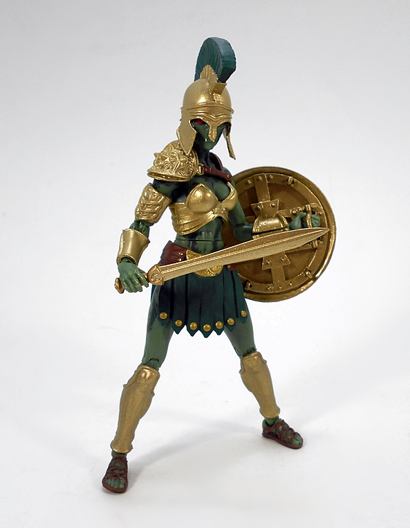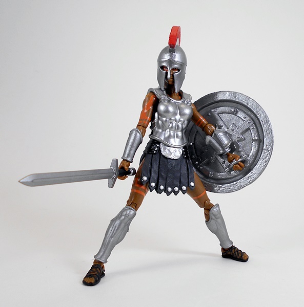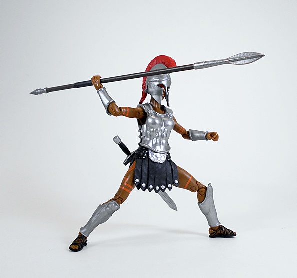 The other weapon looks like some kind of enchanted hatchet, with a crystal in place of a regular axe head. I’m not sure if this thing shoots magic blasts, or if she just buries that crystal into her enemies, but it’s a pretty cool and imaginative piece. The handle is sculpted to look like ancient and gnarled wood, and the red and blue crystals illuminate nicely under the right lighting.