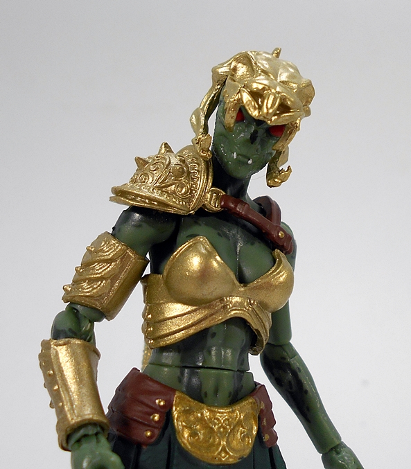 The head is gorgeous! While I was a little cool on two of the three heads included with the Knight, this one really shines on every level. She’s pretty, has some sharply defined facial features, and near perfect paint for her eyes, eyebrows, and lips. The hair sculpt is also sharp and very intricate, although it does look like it’s defying gravity. I would have liked it more if it wasn’t so high, but when the rest is so good, I’m not going to nitpick. Laguna also has a pair of sculpted gnomish goggles worn up on her head. She uses these when she ventures out of her cavern habitat into the brightly lit surface world.