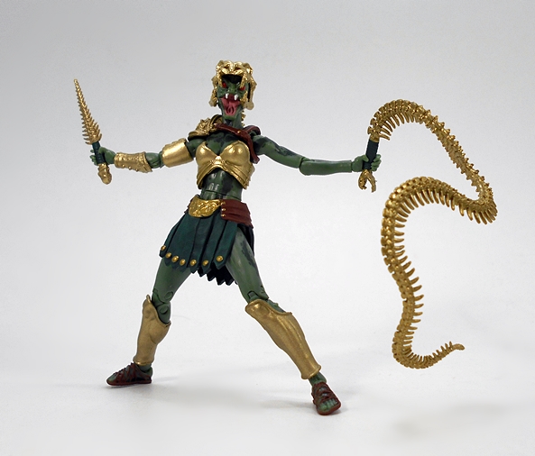 Because Laguna uses the standard HACKS buck, she has some great articulation. The only thing lacking would be swivel cuts in the biceps and shoulders. Her legs feature ball jointed hips, double hinged knees, and the ankles have both hinges and lateral rockers. The arms have rotating hinges in the shoulder and elbows, and the wrists are hinged pegs. The hinged pegs allow you to easily swap out her hands with the extra pair that’s included. She has a ball joint in her chest and a double ball joint in her neck. As already mentioned, the wings connect to the body with hinged pegs.