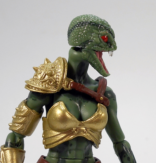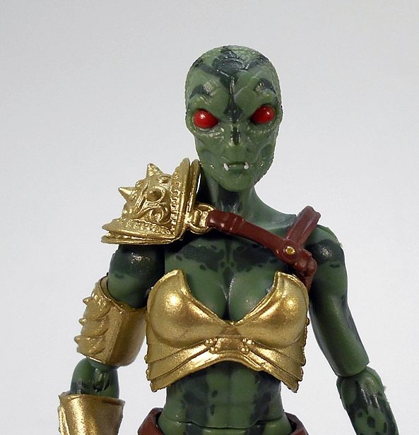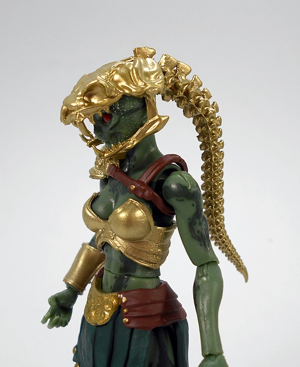 The body is cast in an ashen-purple skin color and is characterized by wings, which connect to her back on hinged pegs. BFS did an amazing job with the sculping on both sets of wings. They have beautiful texturing and tiny bone tips. The combination of skin color and wings give her a very gargoyle-like appearance, which also feels very appropriate for a race of cavern-dwelling fairies. Laguna also includes a second pair of open wings to offer a couple of different display options. One unfortunate issue I have with my figure is that the hinge on her left closed up wing is frozen. I’ve tried boiling it, I’ve tried razoring the seams, but nothing will get it loose. It’s a bummer.