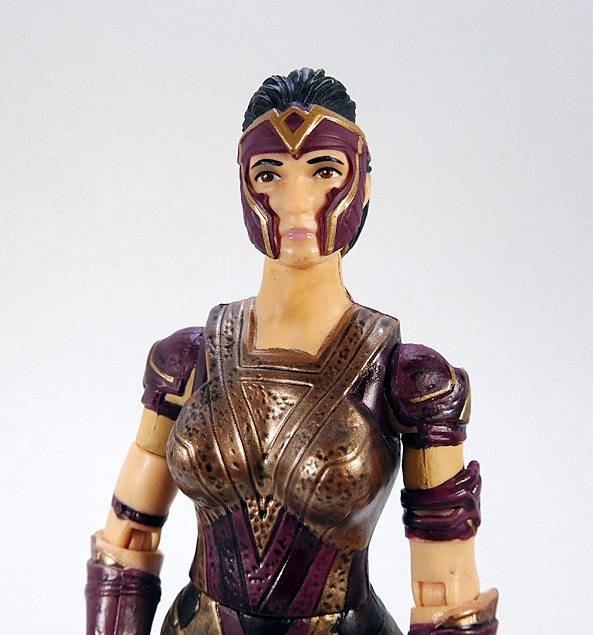 The bullet defecting on her wrist bracer is done with a bit of translucent plastic colored in red and orange. It’s not spectacular, but it gets the job done. It would have been cool to have an actual bullet sculpted in there, or perhaps being deflected away.