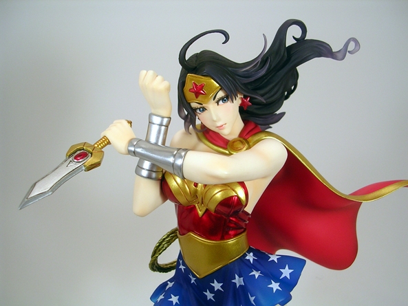Hippolyta also sports sculpted armor pieces up near her shoulders, and bracers with sculpted straps. Over her armor, she dons a sleeveless cloak on with a sculpted fur lined collar. It looks great, but it’s also easy to take off if you want to give her a little more range of motion.