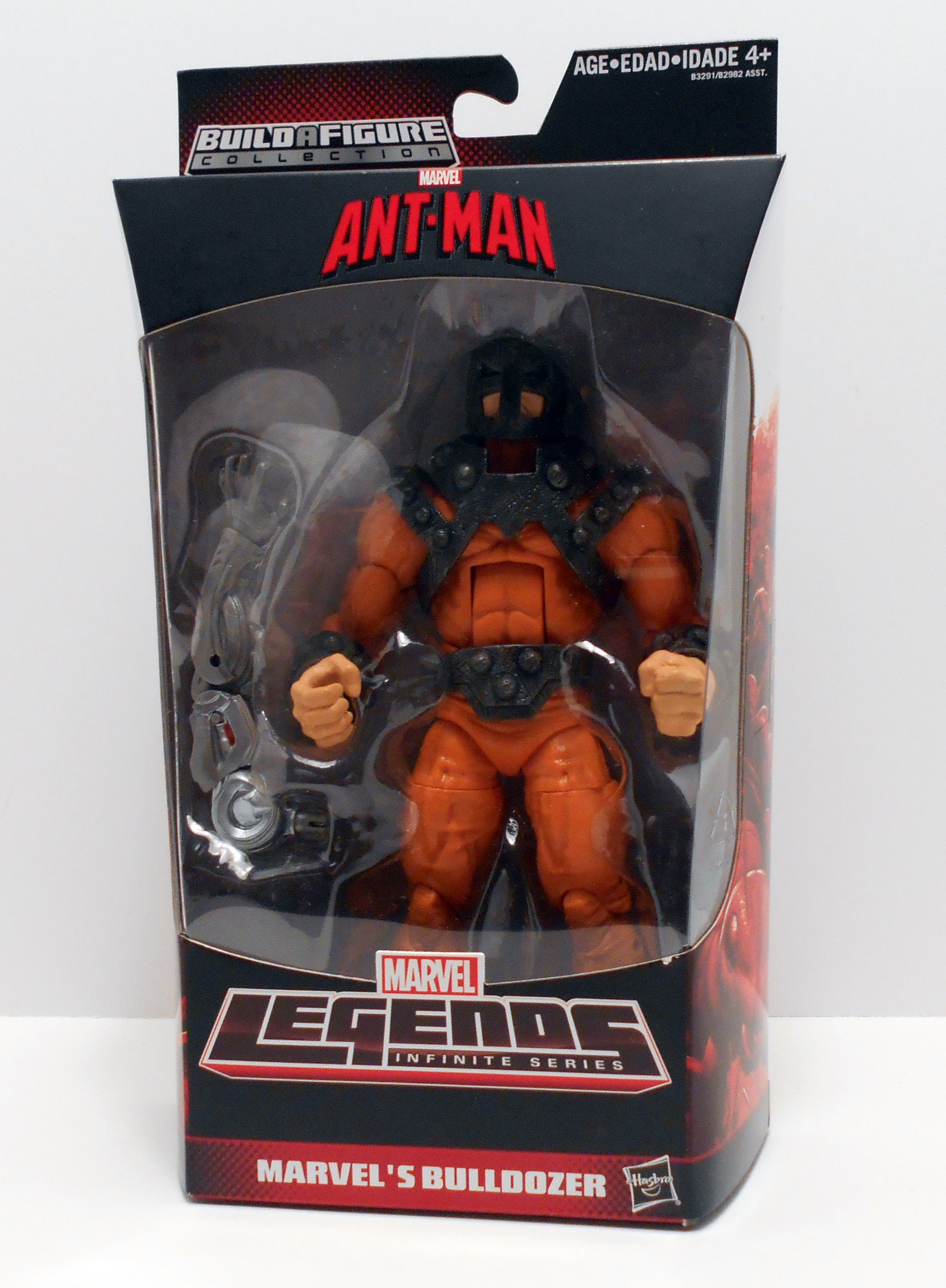 At this point there isn’t much notable about the packaging, except maybe to pointlessly speculate why Bulldozer is appearing in an Ant-Man package. I’ve got to tell ya, folks, I thought I’d have to throw a lot of extra money to some dirty scalper to get this guy in hand. He debuted on Amazon in the $35 range, but soon settled at a more reasonable $21 and I quickly grabbed him up. Like all the Legends Wrecking Crew, Bulldozer is a big boy and he fills out his package nicely, with only a little extra room for that BAF Ultron arm.