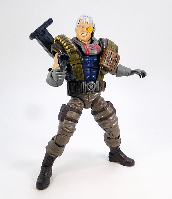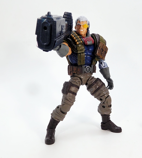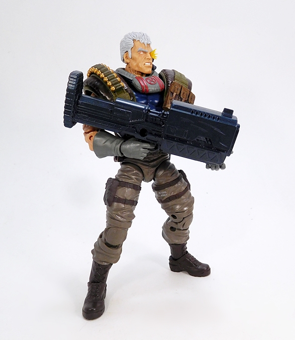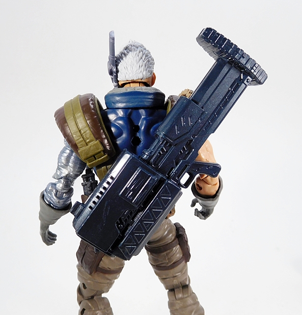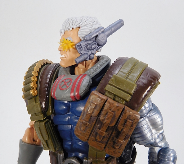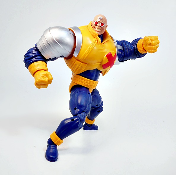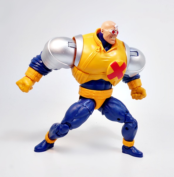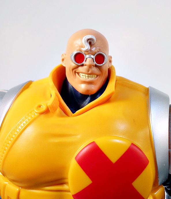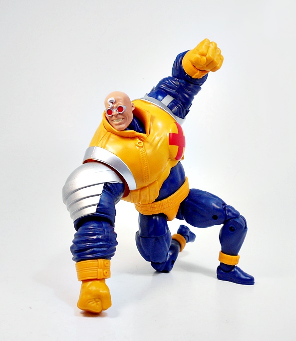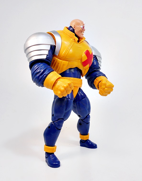 Guido sports an appropriately disproportionate body, which is seriously pumped on the top half, like we’re talking Juggernaut levels of pumpitude, and relatively normal sized legs with tiny feet. Yeah, he’s freakish looking, but I’m not about to call him out on it! Much of the body is painted blue to depict an under suit, with the massive yellow vest making up his upper torso, complete with a giant X-Force disk on the left side of his chest, a sculpted zipper running across the right side of his chest, and a slightly popped collar. His already massive shoulders are further reinforced by segmented silver armor plates, perfect for taking down walls or tackling foes into oblivion. More yellow is added to the mix in the form of his belt and X-Undies, his massive gauntlets, and dainty ankle cuffs. Actually, they’re normal-sized, but they look dainty on him. Hasbro did an absolutely splendid job on the costume here! He carries just enough sculpted detail to give him that singular cartoony look, and that eye-pleasing one-two punch of deep blue and vibrant yellow never goes out of style!