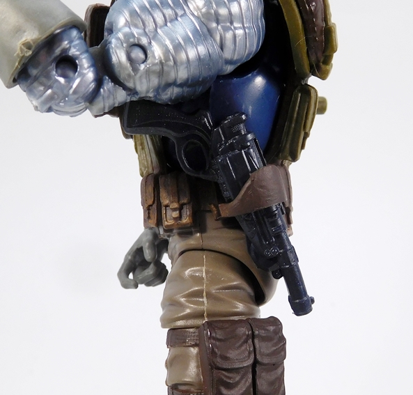 As for Guido’s tiny head, well Hasbro probably didn’t have a lot of trouble packing this portrait with personality, thanks to Strong Guy’s distinctive mug. His bald pate is punctuated with a little curl of white hair sprouting right in the middle of his head. His pince-nez goggles are painted silver with the lenses painted in red matte, and his beaming smile advertises a full boat of slightly yellowed teeth. A prominent, dimpled chin and pair of tiny ears rounds out Guido’s melon quite nicely. This is a great head sculpt and it makes me smile every time I look at it.