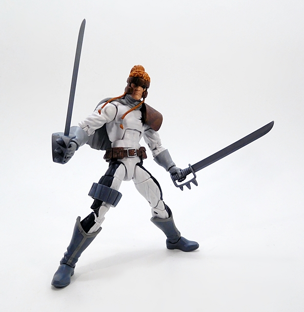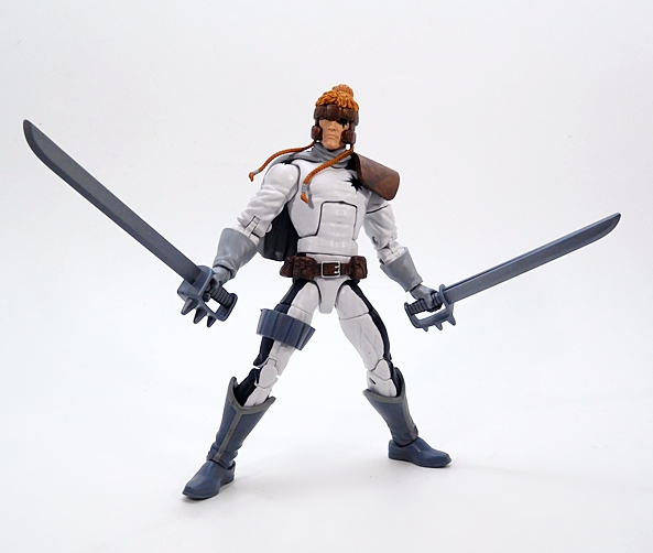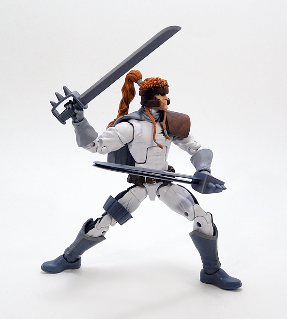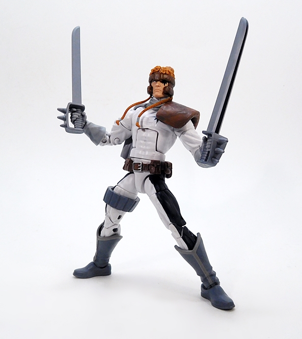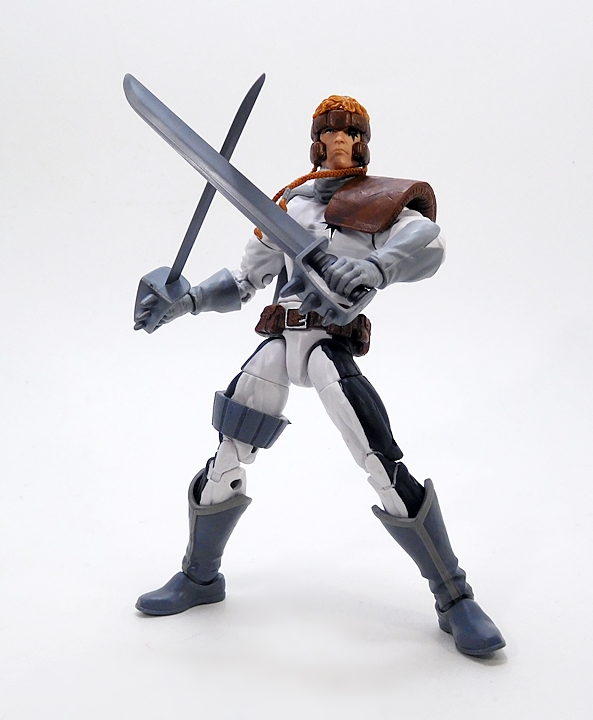 And here we are, Shatterstar in all his 90’s comic design glory. Giant shoulder pad? Check! Bitchin’ half cape? Got it! Meaty, extra-thick, pointless thigh strap? Of course! Pouches? Um… sorta? He’s got a nice brace of pouches running around his sculpted belt, but honestly, there’s plenty of room for more. All these wonderful 90’s trappings feature original sculpted parts and are tied together with a pair of buccaneer gauntlets and some truly epic flared boots. The underlying, mostly white, buck features wide black stripes down the outer legs and his star pattern printed in black and partially obscured by his mega-shoulder-pad. All the original sculpting looks great. I love the little folds and rumples in his cape and the shoulder pad and belt have a worn leathery look to them. Even the belt buckle is painted silver. When all is said and done, this is a great looking figure!