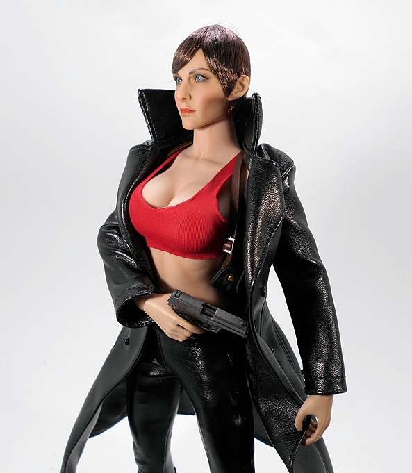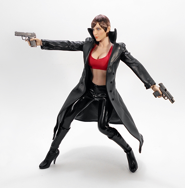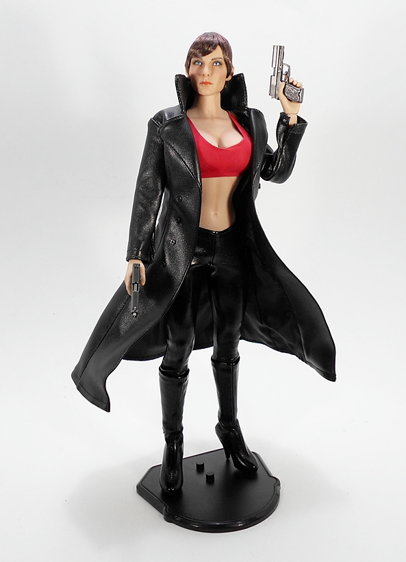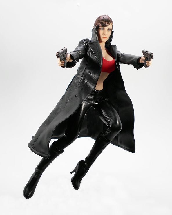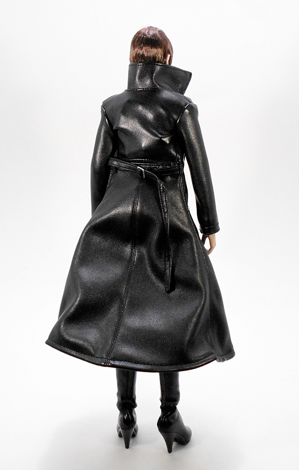 Getting the coat on can be a little challenging, since the realistic skin on the arms tends to grab at the material. The easy solution is applying a little bit of baby powder to her skin, STOP LAUGHING AT ME, so the sleeves just slide right on. Some third-party outfits sets have a habit of staining the silicone skin on Phicen figures, especially when dealing with black or darker colors. For the most part, the outfits Phicen includes don’t usually present a problem. Here’s hoping that will be the case with the jacket. Either way, the trench coat is professionally tailored and fits the figure very well, even with the shoulder rig on, which remains nicely concealed inside the coat. There’s even a wire at the bottom so you can pose it all billowed out.