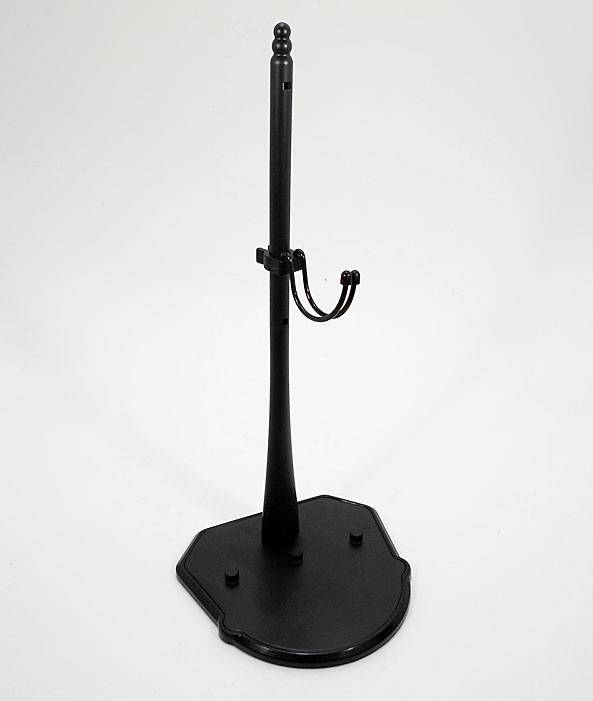 The provided stand is both a strange and interesting piece. It’s a simple black base with four chunky pegs, which are designed to either take the provided post or plug right into the holes on the bottom of Mercy’s boots. Weird, right? Foot pegs are not something I tend to associate with sixth-scale figures. The biggest issue I have with the stand is the post. You get two attachments for the post, one is a standard crotch cradle and the other is a wire, which hugs the waist like a typical Kaiser doll stand. There’s no way I’d use the waist grip on the skin, as its almost guaranteed to mark it. The crotch cradle would be acceptable, but the post is really tall, so even though you can adjust the attachments to go as low as you need, the post is always going to be sticking up really high and doesn’t really work well with Mercy’s trench coat. Oddly enough, the foot pegs are clearly the way to go here.