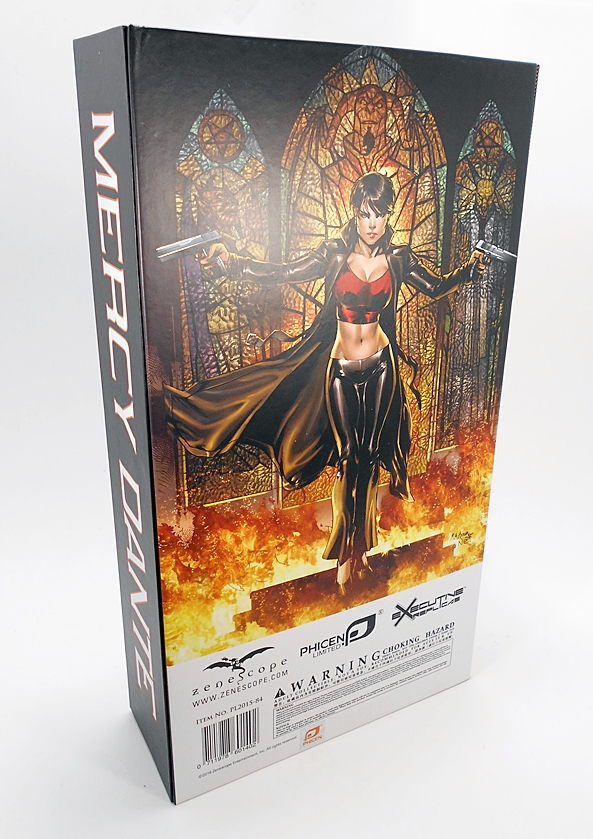The first one I pulled the trigger on was Mercy Dante, a really cool and undoubtedly bad-ass character, who was first introduced as another victim-of-the-month in the pages of Grimm Fairy Tales. When she was young, an assassin murdered her parents in front of her and she was forced to raise her orphaned sister, Grace. Unfortunately, Grace wasn’t able to cope with her lot in life and she committed suicide, leaving a bitter Mercy devoting her life to revenge. She ultimately tracked down the assassin, kidnapped him and his young daughter, and then shot the daughter in the head right in front of her. It’s a sobering and hardcore page that stands out even in Zenescope’s delectable sea of T&A fanservice. Sela Mathers, who we’ll over-simplify by calling her the good witch of GFTs, gave Mercy a second chance to change what she had done and Mercy took it by shooting herself in the head instead of executing the little girl! But that wasn’t the end of Mercy’s story, because even in death she got her own excellent mind-bending spin-off in the pages of Grimm Fairy Tales: Inferno. So, enough with the backstory, let’s get to the figure!