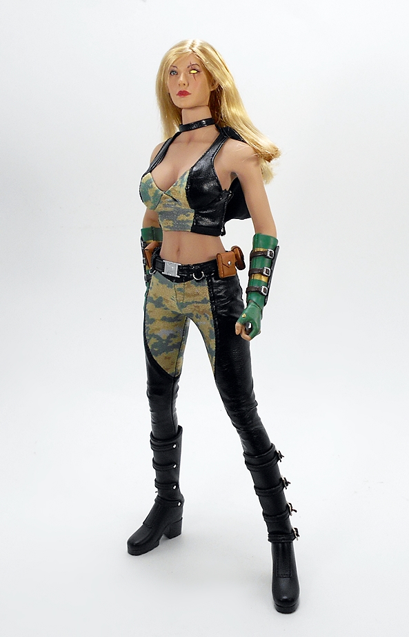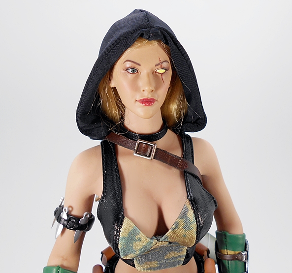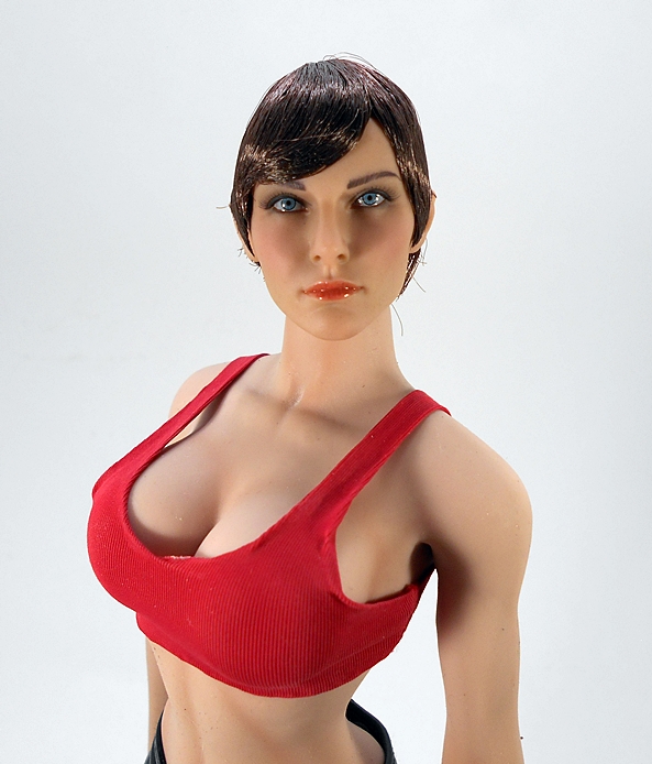 Seeing as how the Phicen body is the Cadillac of Sixth-Scale female action figures, the only thing about this figure that gave me pause was how good the likeness turned out. But I needn’t have worried. Granted, we’re talking comic book likeness here, but I’m totally pleased with the resemblance to the artwork. The paint for the eyes and lips is particularly nice, and the skin tone on the head matches the body quite well. She comes close to catching that lifelike look I’m used to seeing in Hot Toys’ efforts, and I think this is one of the best face sculpts that Phicen has put out to date. The hair is rooted, which was a bold move, considering Mercy’s trademark pixie cut. Phicen went with using a lot of product in the hair so it stays fairly flat. Keep in mind, I haven’t messed with the hair at all, so there’s some room for improvement. This is simply how she looks right out of the box.
