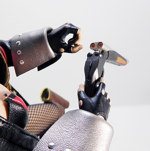 The gun holding hands work OK, but because the fingers are soft and rubbery, the grip on the pistols isn’t as tight as it could be. It hasn’t posed any problems with her holding them, but I tend to like the firmer and more solid grips that the Hot Toys and Sideshow figures have on their accessories.